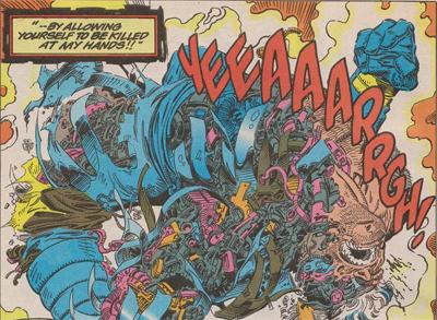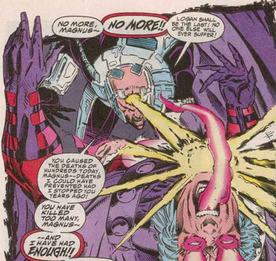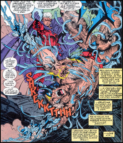 Fatal Attractions, as such, feels like a much firmer departure point from the Claremont era than X-Cutioner’s Song did. Indeed, it radically alters the status quo of the two X-Men characters most carefully developed by Claremont. Wolverine has his adamantium metal torn from his body, in an attempt to pull the character back from his nigh-invulnerability and to inject some more pathos into the character. Magneto, the villain painstakingly and carefully developed by Claremont to transcend his modest Silver Age roots, is reverted to a cackling power-hungry genocidal madman, and then unceremoniously “wiped out” by Charles Xavier.