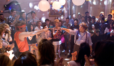 In fairness, the movie actual emulates the eighties quite well – in that it doesn’t go for an over-the-top approach to the decade. Sure, there are silly sunglasses, crazy hair and one guy in a leather Thriller outfit, but there’s no painful winking at the audience. There’s nothing to suggest that the movie couldn’t be transposed to the modern day and keep the same soundtrack. (Maybe it might have to update some of its fashion sense, though.) Even the music used feels like an affectionate playlist composed by somebody who came of age during the decade, rather than a checklist of the biggest hits of the period. (Though Safety Dance does get a look in.)