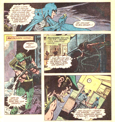 When a gunshot puts him in a wheelchair, Batman doesn’t seem too preoccupied with the idea that he may never walk again. He’s more concerned that he’s missing a big drugs shipment. “The one time in my life I need these hands… these legs… every ounce and inch, every fiber of my being… I’m a cripple!” he declares. “A crippled Bat doesn’t fly, Alfred!” Even in the middle of what seems to be a pretty serious recovery (not based on anything in the comic, more in the process I assume follows being put in wheelchair), Batman conspires to bring Green Arrow, Black Canary and Green Lantern to Gotham to act as his playthings.