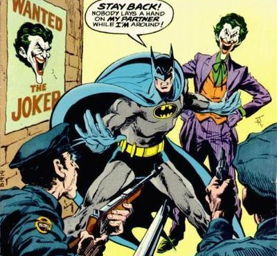 Even this image cannot capture the awesomeness of this comic… They left out the bit where the Joker is coercing them to do this by threatening to shoot a puppy… that has life-saving anti-virals in its blood for a plague the Joker started… to kill off a henchman who might testify against him…