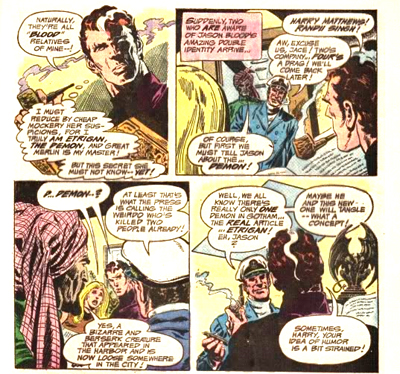 I think at least part of the reason that Haney and Aparo’s stories are such fun to read is because of the rich pulpy atmosphere they evoke. Sure, there are demons and aliens, but they’re all filtered through the lens of genre fiction – detective stories, mysteries, adventures, all tinged with a hint of the bizarre. It’s the willingness with which Haney seems to seize those strange elements that infuses the series with a sense of joy.