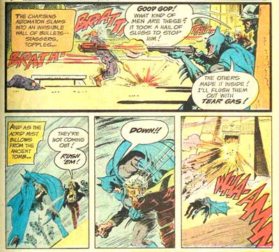 What separates these covers from most of the Silver and Bronze Age magazines with a similar approach is that Haney and Aparo actually managed to construct internal coherent narratives. Don’t get me wrong, there are strange plot points scattered everywhere, to set up various storylines. However, once Haney starts telling a story, he’s relatively coherent. Or, at least, he can generally foster enough crazy awesome ideas to prevent the audience from dwelling on the internal mechanics.