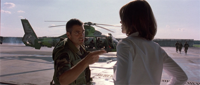 Despite the fact that they’re both quite good in the individual roles, Clooney and Kidman don’t really have any chemistry. I suspect it’s a problem with the script, but they never seem like they truly care about one another. They seem more like a severely dysfunctional couple than a budding one. They’re meant to be flirty, but they almost sound resentful of one another – and not in that playful was that big-screen couples are before they come to love one another. “You know, for once you could say something nice,” he observes after recovering eight of the nine stolen warheads, sounding like a brow-beaten husband. “That’s not enough,” Kidman’s Kelly freaks out over the walkie-talkie, as if he’s messed up the shopping list.