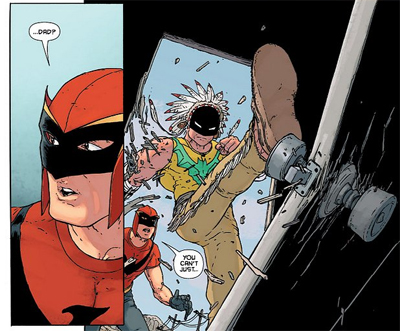In fact, Morrison apparently plots the issue, lets Burnham illustrate it in his own manner and then adds dialogue after he gets Burnham’s pencils back. It actually sounds like (a much tighter variation of) Stan Lee’s classic “Marvel Method”, and suggests a very trusting relationship between artist and writer. And Burnham certainly earns that trust.