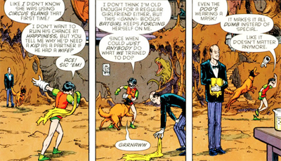 In fairness to Morrison, as well, the author seems to acknowledge the legitimate criticism of his central premise. Batman Incorporated does take away from the notion of Batman as loner who can do it all himself, and creates an army of copies and substitutes. While Morrison constructs a convincing argument, he does concede that some fans might not like the idea of an international corps of Batmen. He has characters frame arguments about it. “Name one situation where we’d need her and not Batman,”Bruce challenges Kathy Kane, the first imitator in a Batman costume.