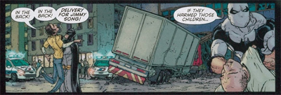 Of course, there is arguably something inherently sinister about Batman, and Morrison just pushes it to the fore. It’s all due to Bruce Wayne’s unique position as a man who chooses to be a hero, rather than a character inherently predisposed towards it. After all, Superman as super-hearing; he can’t help but pick up cries for help or hearing bank robberies – so it’s hard to argue that he’s consciously invading privacy or anything like that. Batman has to actively hack into communications systems to stop crime, which raises questions about his moral authority. Hell, Superman even has a special set of gifts one could argue he’s almost obligated to use for the betterment of mankind. Bruce is just a man, and his decision to assume moral authority must suggest some form of arrogant self-righteousness.