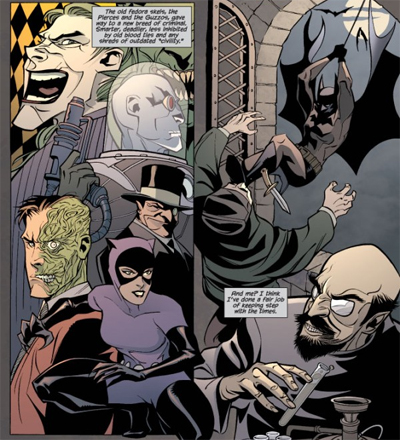 “A hundred years ago they called it the Wonder City,” he explains. “Modern-day Vegas, Orlando, forget it. Nothing could touch Gotham in its heyday. In a city where the two major industries were manufacturing and crime, the people often needed something other than liquor to take their minds off their miseries.” As such, he offers a fairly fascinating and well-thought-out explanation for how a city like Gotham might actually have developed, somehow rationalising years of comic book plotting with a hint of logic. It kinda makes sense of how the Riddler can alway find an abandoned amusement park. “By the mid-fifties, Gotham boasted no less than three zoos, five amusement parks and I don’t know how many wax museums and reptile farms.” Once Dini explains how these locations were built, it’s simple to explain how they became abandoned – Gotham was hit by a recession after all.