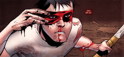 It’s all these things and more, but seldom from one issue to the next, which makes it a massively frustrating read. It doesn’t help that the book feels the need to tie into the new Batman status quo just as its finding its feet, with the Black Mask and his cronies popping up during a crime wave with little context or explanation – simply building off Tony Daniel’s run on Batman. Such things don’t really work well, especially for a series that is wrestling with any number of distinct identities. It’s a showcase for Dini’s new hero, “Abuse”, which feels like an attempt to shoe-horn in another hero into Batman’s already expansive cast, but it also gives us an arc focusing on Damian Wayne and then one wrapping up the Thomas Elliot plotline that’s been dangling since Heart of Hush.