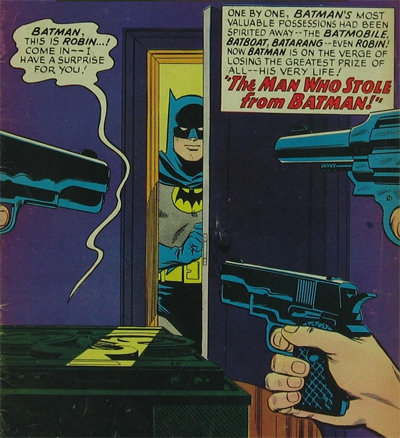 As in the previous volume, Batman appears to have quite the social life around Gotham. While Schwartz may have been easing the character back to his roots as a detective and away from the wacky sci-fi of the fifties, Batman remained the established upstanding Gotham citizen. Here, again, he’s an active member of Gotham’s “Mystery Club” and he even volunteers to host a charity auction. “I’ve donated a few articles I’ve used in my cases — to be auctioned to get the Alfred Foundation Charity Funds Drive off to a good start!” It’s like a very surreal and upbeat version of Scott Snyder’s Black Mirror.