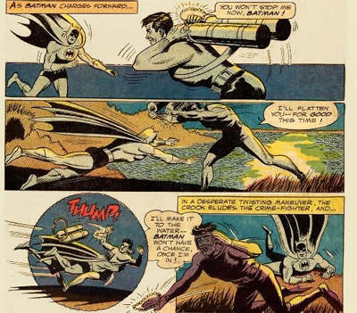 At one point, in Batman’s Power-Packed Punch, writer Gardner Fox falls back on the tried-and-tested “let’s give Batman superpowers!” plot that felt tired after the first three or four times it had been used. The fifties had been filled with stories of Batman gaining powers similar to Superman, and that sort of wackiness was exactly the sort of nonsense that Schwartz had been specifically drafted in to avoid. Fox’s script even acknowledges that the story is essentially doing “Batman-as-Superman” when Batman himself muses, “Make like Superman, eh?”