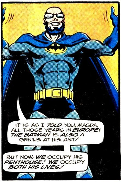 Part of the problem is Englehart’s writing, in a style that seems rather corny and forced by today’s standards, with thought balloons and dialogue bubbles punctuated with awkward exposition. “The Batman has no super-powers,” Bruce remarks, “so I have to make myself the best I can be.” However, there are also the plot points. While the story deals with Bruce’s on-going lady troubles and makes some points about the political system, it seems surreal to see a subplot involving Two-Face getting himself cloned. Twice. In a way that very obviously doesn’t make sense. I am not a geneticist, but I don’t see how getting doused in acid could alter his DNA.