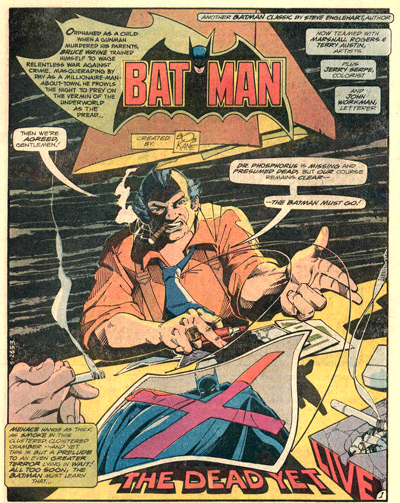 Filed under: Comics | Tagged: Archie Goodwin, batman, Batman: Legends of the Dark Knight, Batman: Strange Apparitions, Batman: The Dark Detective, Bronze Age, ChristopherNolan, dark knight, dark knight returns, Dark Knight Rise, Dark Knight Rises, dc comic, dc comics, Golden Age Batman, Hugo Strange, james robinson, joker, Legends of the Dark Knight: Siege, Len Wein, Marshall Roger, Marshall Rogers, Siege, silver age, Silver St. Cloud, Steve Englehart, Strange Apparitions, The Golden Age Batman, tim burton, two face |