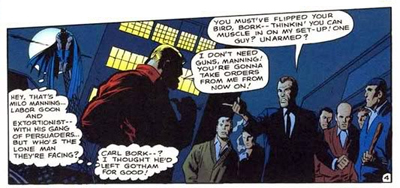Haney’s Batman seems to hold pretty major authority in Gotham City. When he shows up at a hospital with a bunch of cocoons, he seems to have the whole place at his disposal. One doctor asks the man in the cowl, “You… you want me to irradiate these… things, Batman?” When Batman confirms that this is indeed what he wants, the technician doesn’t hesitate. “Very well, but only because you say so!” I doubt that any civil servant could have got it done so quick. In But Bork Can Hurt You, Batman seems to be in a position where the city council can exile him from Gotham. (The idea of Batman being “fired” by the city recurs in Haney’s work.)