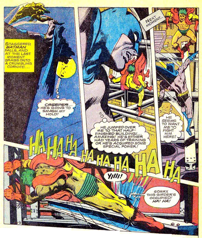 When he encounters the Creeper, Bruce seems confused by the idea that a hero could operate at odds with the law. “You’re… the Creeper… wanted by the law!” he declares. At another point, the sinister Kaine vows “to rid our city of corruption, crime and incompetents like Commissioner Gordon and Batman!” Notice that Kaine has no problem with a man dressing up as a giant bat and usurping the police’s role in Gotham. The problem is that Batman isn’t doing it well.
