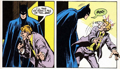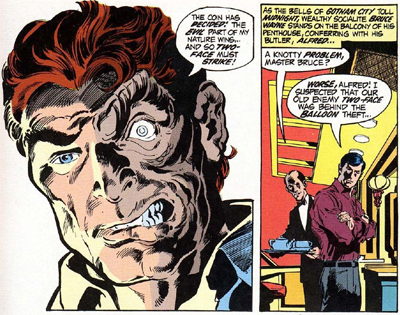 However, the reappearance of Harvey Dent is fascinating, if only because the character had been lying fallow for quite some time before the pair decided to revive him from limbo. In fact, Harvey had even been cured for a long time before this, with several forgettable imposter Two-Face characters appearing. (Although he was scarred once again – in a convenient explosion, like in a certain other Two-Face story – in his last prior appearance, over a decade-and-a-half before this story.) It’s hard to imagine that Two-Face, one of Batman’s most iconic villains, could have been left alone for so long, but I imagine that Half an Evil played a pretty significant part in reestablishing Two-Face as a crucial Bat-villain.
