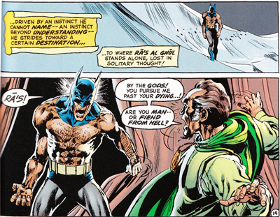Ra’s believes in some grander spiritual system that Bruce would never consider. “The desert is the shaper of my destiny,” he assures Batman after a fateful scorpion sting, “and it has decreed me victor!” Bruce could not see that scorpion sting as anything more than blind luck or an unaccounted variable. To Ra’s Al Ghul, it is something far more meaningful – it is the hand of fate itself. It’s very tough for a character to challenge Bruce on those terms without upsetting the delicate balance of a Batman story arc, and O’Neil does it effortlessly with Ra’s.