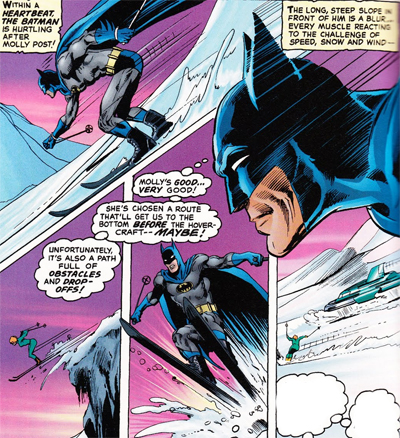 O’Neil and Adams didn’t add the international element to Batman. That was an aspect Schwartz had played up during the “new look”, and quite smartly. After all, Batman fits the James Bond archetype quite well, after all. In fact, his trip to Switzerland to take on Ra’s Al Ghul evokes On Her Majesty’s Secret Service and The Spy Who Loved Me among other adventures. (There’s even a ski chase.) Still, I don’t think that anybody made it look quite as good as Adams. The artist took Batman out of Gotham to countries like Spain, Ireland and India. All illustrated wonderfully.