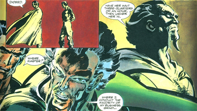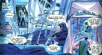 It seems that Barr is setting up this adventure as the final confrontation between Batman and Ra’s Al Ghul. After all, Son of the Demon was dripping with subtext suggesting that eventually Batman or Ra’s Al Ghul would be forced to end their cordial rivalry. Here, Ra’s Al Ghul states the principle in no uncertain terms. “One of us will kill the other, given time.” It seems that Ra’s is motivated towards an endgame in Bride of the Demon, stating, “The victim will not be me.”