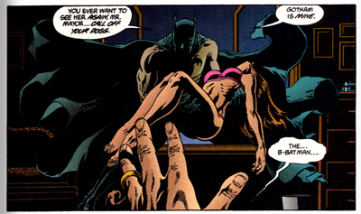 Anyway, I say that because I feel I should be upfront in discussing Moench’s fairly interesting criticism of Miller’s work. I actually think Moench has some great points, and was arguably way ahead of the curve. While Miller’s take on Batman is clever and intriguing, it did become a bit of a problem in the hands of less skilled writers. In an effort to make the character “darker and edgier” and “more realistic”, the character became increasingly paranoid and anti-social and a bit of a jerk-ass. You know you might have a problem with characterisation when two major comic book events are written about how jerk-ish the character has become. (Batman’s isolation was a plot point in Identity Crisis, and his contempt for other heroes treated as a personality flaw in Infinite Crisis.)