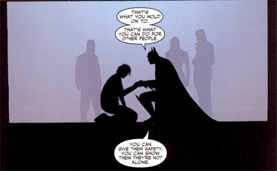 Given how easy it would be to adopt a cynical approach to Batman’s fantasies, Ellis is remarkably sensitive to the character. You could make the case that Batman is psychologically broken, trapped in a pattern of acting out revenge fantasies and unable to escape the past – and perhaps he is. However, Ellis shows a genuine affection for the character, painting him as a tragic and sensitive hero, forever linked with one of those eternal childhood fears – the loss of a loved one we are unable to prevent.
