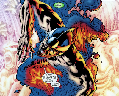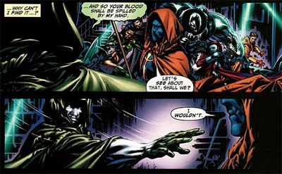 Interestingly, as well, Rucka also uses the Spectre to put Doctor Light out of his misery. The character had become increasingly difficult to write after his depiction in Identity Crisis. Even the opening of Morrison’s Final Crisis suggested that the character had become a very grim and off-putting one-note character who had really become indistinguishable from “the one thing he did one time in order to make an event comic sensationalist.” (In fact, he shows up here acting out a rape fantasy with a bunch of prostitutes in Teen Titan outfits. It’s hard to imagine there’s a time when Doctor Light didn’t seem to have an entire schtick around being a rapist.)