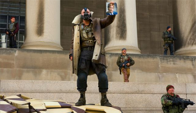 By his very nature, Batman assumes moral authority in Gotham without any mandate to do so. Bane does the same here – he brands his band of goons “liberators” of the great city – a rather uncomfortable inversion of the portrayal of the Joker in The Dark Knight as a “terrorist.” While Batman adopted the tools of American foreign policy to make Gotham a better place, Bane uses those same tools to attack it. He seizes control of Gotham (it’s explicitly described as an “occupation”) and turns it into a “failed state.” If Bane’s lower-class rebellion is a radically right-wing nightmarish version of the Occupy Movement, his takeover of Gotham is a radically left-wing reimagining of the United State’s involvement in Iraq and Afghanistan.