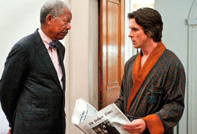 Ironically, this seems to evoke rumours that Christopher Nolan was going to make a Howard Hughes bio-pic, as Wayne becomes exactly that sort of eccentric shut-in, with characters joking about him “peeing into Mason jars.” There’s a sense that Bruce wants to minimise human contact. When a member of the help makes off with a priceless heirloom (which is a nice nod to the Batman mythos, and ties back to Bruce’s origin), Bruce warns Alfred, “Maybe you should stop letting them in this wing of the house.”