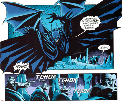 I think it’s possible to construct an argument that Batman: Vampire makes an effort to push the bleakness of nineties Batman comics well past their logical extreme, in a conscious effort to convince readers that this is not what Batman should be. Just like Knightfall was about illustrating that Batman could weather nineties trends towards excessive brutality and violence, and easily fend off all potential challengers. Batman: Vampireunfolds in a world completely without hope, with a Batman who seems a little too bitter and cynical even before his physical transformation begins.