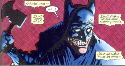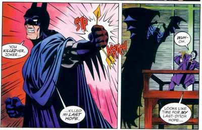 Modern Batman can’t have a truly psychotic breakdown, or make a truly massive error in judgment without undermining the franchise. For example, if an author wanted to deconstruct Batman’s brutal interrogation techniques, they can’t kill a crook during Batman’s examination, because that would make him a murderer. Similarly, Bruce could never go two far and cripple a henchman for life, because that would establish him as reckless and undermine his credibility. No subsequent author could really pull the character back from those points.