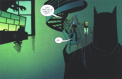 Thomas is almost a parody of every dark and extreme portrayal of Batman ever – just pushed far enough to make us appreciate that maybe the character isn’t as dark and cynical as we would imagine. Thomas seems like the sort of character who would give even Frank Miller’s borderline psychotic Dark Knight pause. He seems bitter, cynical and disillusioned. When he discovers that somebody’s been preying on the homeless, he’s less than sympathetic to the disenfranchised. He and Gordon dismiss them as “drunks” and “junkies.” Thomas sarcastically scoffs, “Now there’s a demographic…” It’s implied that Thomas is only really interested in their suffering because it might lead him to the Joker.
