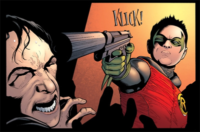 I don’t like Robin as a concept because I feel that conscripting a child soldier into Batman’s war on crime weakens Batman. Even if you steer clear of the military tone that Frank Miller grafted on to Batman’s one-man campaign, it still seems reckless and irresponsible to pull a child into a world populated with mass murdering pyschopaths and other ne’er-do-wells. You can argue that it doesn’t matter – it is, after all, a comic. Just draft it into suspension of disbelief. After all, this is a guy who dresses up as a bat.