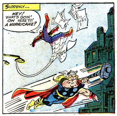 And so Spider-Man is stuck dealing with all manner of tiny complaints while out trying to save New York City. “Darn it!” he curses, examining his suit. “It’s still wet! I’ll have to leave it a while!” At one point, his aunt confiscates his crime-fighting outfit, forcing Peter to buy a Spider-Man costume in order to go out as Spider-Man. It’s exactly that sort of thing that defines Spider-Man. Those little inconveniences that don’t happen to Captain America, or the Fantastic Four, or Thor. Strangely enough, in the midst of all this pseudo-science-fiction and fantasy, it makes Peter Parker seem strangely relatable.