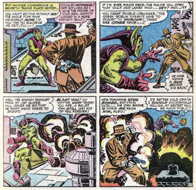 Kurt Busiek’s Untold Tales of Spider-Man would cast the Crime Master as a mob boss trying to cash in on the costumed superhero fad. Here we have the idea of the Green Goblin seizing control of the city’s mobs. He doesn’t even do it by force – he does it strategically, but damaging his rival’s infrastructure. It seems far more logical and rational than most super villain schemes, which normally consist of just blowing stuff up. (It does catch Spider-Man so thoroughly off-guard that he assumes the Goblin has suddenly become a hero.) That said, his first plan to kill Spider-Man does involve shooting a fake movie, so maybe the Green Goblin isn’t that sharp character.
