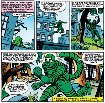 It helps that Jameson is a wonderfully funny character, despite being human. I love this exchange while Spider-Man is defending Jameson from the Scorpion during an attack on the Daily Bugle:
