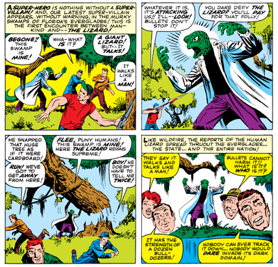 With the recent release of The Amazing Spider-Man, it is also worth reflecting on the Lizard. I like the Lizard. I really like the Lizard, if only because he’s a vaguely campy atomic movie monster with a great appearance. He’s also theatrical, to boot. “Flee, puny humans! This swamp is mine! Here the Lizard reigns supreme!” And yet, much like Octavius, the Lizard is strangely sympathetic. His letter, although simple (“take Billy… leave– never come back–“) is rather poignant, as is the fact that his transformation was not caused by the pursuit of power, but in a quest to regain the arm he lost during the war.