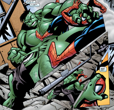 It also gives Bendis the opportunity to write characters he wouldn’t normally write. For example, the second story is an enjoyable account of the first encounter between Spider-Man and the Incredible Hulk. It’s nothing more complex than that, but Bendis crafts and entertaining story – evoking the classic Nothing Can Stop the Juggernaut story from regular continuity. The idea is that Spider-Man will do whatever it takes to protect innocent people, no matter how much harm he might come to in the process. While all versions of Peter Parker are remarkably heroic, there’s something more sweet and moving about Bendis’ teenage version of the character, who seems to take more than is humanly possible.