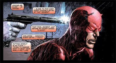 Bendis’ Castle sees things in black-and-white. Acknowledging that Castle isn’t bound to the law (after all, the law dictates not only crime, but also method of prosecution and consequences), Bendis explicitly ties him to more spiritual ideals. Castle doesn’t necessarily see the world in terms of ‘crime.’ Rather, he sees it in terms of ‘sin.’ He explains to one victim, “I know why man sins. Do you know why man sins? Because he wants to.” The portrayal makes a lot of sense.