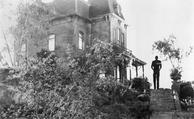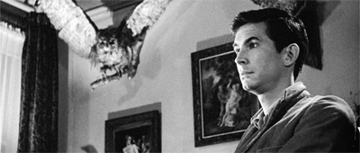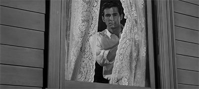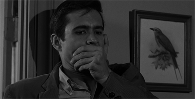 Norman’s mother is jealous and possessive, and pretty liberally throws around the word “erotic.” She yells, rather vocally, “I won’t have you bringing strange, young girls in for supper by candlelight, I suppose, in the cheap erotic fashion of young men with cheap, erotic minds!” Norman is so deeply repressed that he can’t even bring himself to cross the threshold into his female guest’s room to eat dinner with her. Instead, the closest he comes – outside of his ‘mother’ persona – is watching through a hole in the wall.