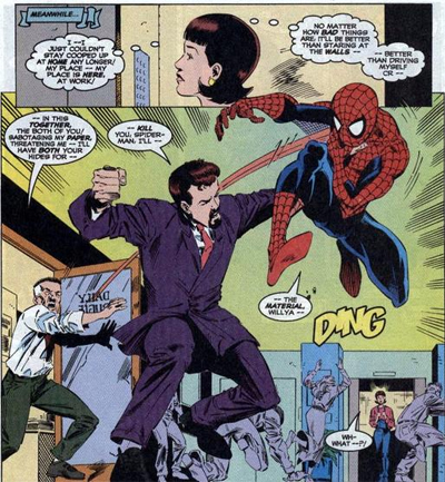 It’s not only Osborn who puts in an early appearance. We get a short cameo from “Edward Brock of the globe”, complete with Jameson challenging his journalistic ethics. Other soon-to-be-significant characters like Simon Williams or Wilson Fisk pop up from time to time. And Busiek does do a fairly good job tying his guest-stars back to Spider-Man.