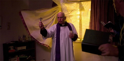 Of course, the problem is that the true story that inspired the movie – despite being the most violent haunting in European history – never reached a climax. The sinister hooded figure who haunted the real life Pritchard family just mysteriously faded away. The movie changes the name of the family, but keeps the back story proposed for the presence by Colin Wilson. Unfortunately, the movie has to construct a third act around the haunting, and that’s where things get a little too messy, a little too loud, and a little too cliché.