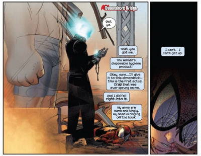Indeed, Bendis goes out of his way to tease us with the threat of a reversion to the classic status quo after Ultimatum. We discover, for example, that the Kingpin has returned to New York City after being banished a little while earlier. One of his henchmen even muses on the fact that it’s a rather strange reversion, wondering, “How does the Kingpin get to come back to America?” Of course, Bendis promptly reintroduces the character in the closing pages of the first issue only to kill him off rather abruptly, subverting our expectations. Mysterio taunts the residents of New York, but he could just be talking to the reader, “You’ve been through quite enough already. You certainly don’t have to put up with that fat @#$%& yet again.” Things change.