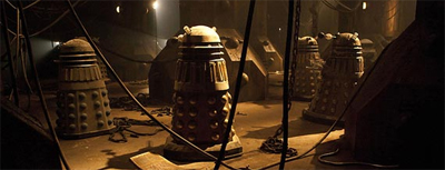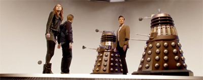 Still, even outside the logistics of beginning at the end, there is a clear purpose to Steven Moffat writing an “… of the Daleks” episode. It’s very clear what Moffat wants to do here. As he outlined in interviews before the series started, he wants to make the Daleks scary again: