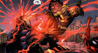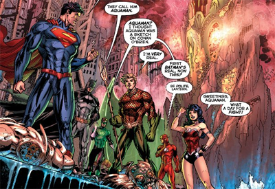 And, to be fair to Johns, he does demonstrate it. Not only are we introduced to an Aquaman who seems to have his house in order (ejecting the invading hordes out of the ocean on to the land), but Johns cleverly plays up the regal nature of the character. Aquaman isn’t just some guy who talks to dolphins, he’s a monarch. “So, who’s in charge here?” he asks as he introduces himself to the team. “I vote me.” Johns even demonstrates that “talks to fish” can actually be a fairly potent and powerful ability in the right hands.