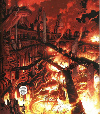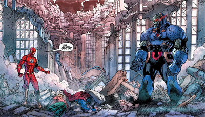 There’s also the fact that it doesn’t feel like a story in its own right. It just feels like six issues of set-up. The major conflict is an invasion of Earth by the New God known as Darkseid. However, it’s just a generic alien invasion, causing massive destruction. New readers will get little or no sense of who or what “Darkseid” actually is. He just seems like a standard alien warlord, rather than the god of tyranny. Of course, Johns is setting up plot threads to pay off down the road, but there’s no sense of closure to the invasion.