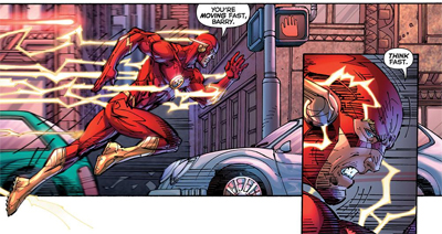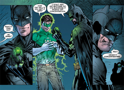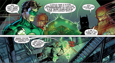 Johns is also keen to showcase Batman as a detective. It seems that Bruce is always watching and observing his fellow heroes. For example, he deduces the nature of Green Lantern’s ring – “I don’t see any buttons so I’m guessing it works off concentration.” Similarly, Bruce also correctly guesses the nature of Barry Allen’s employment – “You sound like a cop.” Okay, none of these are shocking revelations, since we already know all this, but it’s nice that Johns includes that aspect of Batman’s personality.