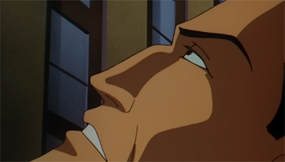 The rest of the episode around Fugit is effective enough. We get some nice set pieces, like a death trap in a vault, even if it does seem like a tangent designed to eat into the runtime. That said, Wise’s script makes exceptional use of Alfred as a character, who can often feel like excess scenery in these episodes, a character who ultimately serves little purpose. Here, he gets some great one-liners. When Bruce asks his driver to wait for him, Alfred deadpans, “My pleasure. This is one of the finest back alleys in all of Gotham.”