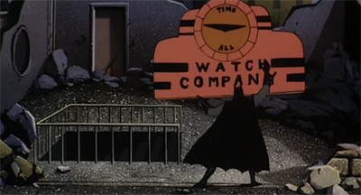 There is, of course, the foreshadowing of his gimmick. The episode’s first line is “It’s about time.” There’s lots of clever (but unobtrusive) wordplay concerning the character, hinting at what’s to come. “You seem pretty tightly wound, Fugit,” soon-to-be-Mayor Hill comments on our villain. “Loosen up,” Hill advises him. “Forget your schedule for one day. Believe me, it’ll make a new man out of you.” It’s wonderfully efficient dialogue, pretty much setting up everything we need to know and foreshadowing the character’s eventual transformation.