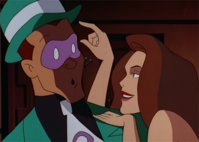 Of course, Riddler’s Reform hints that the character’s obsessions are mirrored in Batman. It’s interesting that The Animated Series generally portrayed a fairly understanding and humanist Batman who tried to redeem his criminals, because it seems like the Riddler really ticks him off. “We both know that I’m going to put you away,” Batman warns Nigma early on, “because you can’t help yourself. You can’t stop.” Given how he’d try to help the Ventriloquist to overcome his own crippling psychological issues, it seems like Batman has no patience for the Riddler.