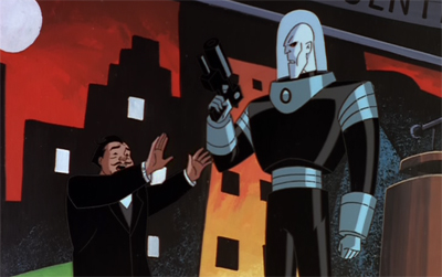 Mr. Freeze wasn’t the only character who got the shaft after a completed character arc in the original series. Clayface was revealed to be alive and Two-Face was still mentally unstable, even though Batman The Animated Series ended the arcs on the characters. I think this is the greatest failing of the mediocre New Batman Adventures, the need to turn this wonderfully designed world into standard superhero cartoon fare. The new animation designs don’t help (how does Gotham have an eternal red sky? Everything else has a typical day to night cycle ).