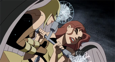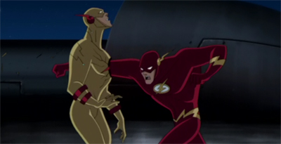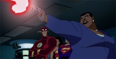 Divided We Fall attempts to counter this notion by illustrating just how powerful the Flash actually is. We get to see him single-handedly taking down Lex Luthor and Brainiac, after the combined villains have levelled the rest of the League. It’s a superbly animated and effective sequence, and one which underscores the power of the character. One wonders how a guy with a thing for mirrors, a dude in a parka and a maniac with a flame-thrower really stand a chance against him.